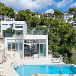 Zeitgenössische Villa in Costa d’en Blanes mit fünf Schlafzimmern en suite, Panoramameerblick, Pool, Garten und privater Dachterrasse mit Jacuzzi.