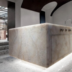 Henge ist eine italienische Marke, die dafür bekannt ist, natürliche Materialien in außergewöhnliche Designobjekte zu verwandeln. Jedes Element – ob Esstisch, Sofa, Stuhl, Leuchte oder architektonische Installation – wird von lokalen Kunsthandwerkern gefertigt und verwendet seltene, ausdrucksstarke Materialien wie: