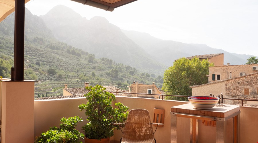 Fornalutx, bekannt als das schönste Dorf Mallorcas, liegt an einem Hang zwischen den höchsten Bergen der Serra de Tramuntana-Gebirgskette auf Mallorca