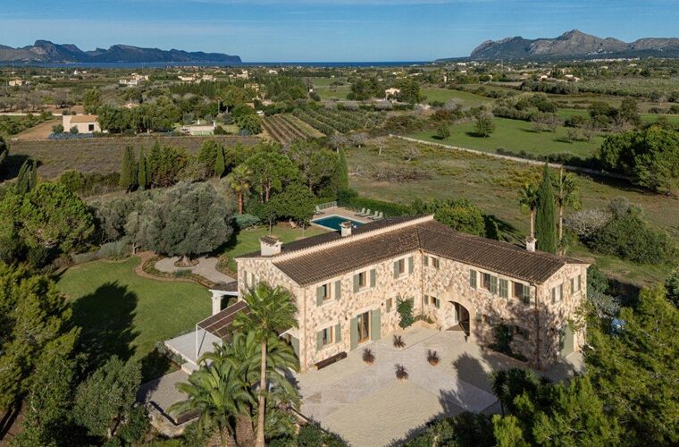 Aufwendig restaurierte Finca mit fünf Schlafzimmern, Pool, Solaranlage und Panoramablick über die Landschaft in Pollensa, Mallorca.
