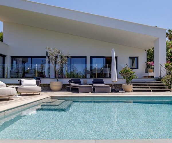Zeitgenössische Villa in Costa d’en Blanes mit fünf Schlafzimmern en suite, Panoramameerblick, Pool, Garten und privater Dachterrasse mit Jacuzzi.