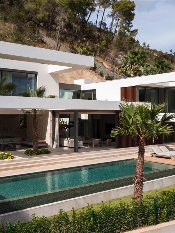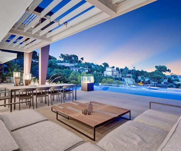 Zeitgenössische Villa in Costa d’en Blanes mit fünf Schlafzimmern en suite, Panoramameerblick, Pool, Garten und privater Dachterrasse mit Jacuzzi.