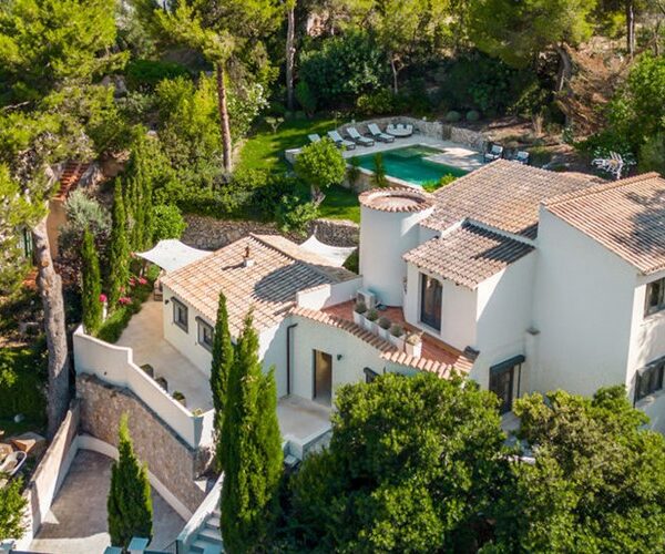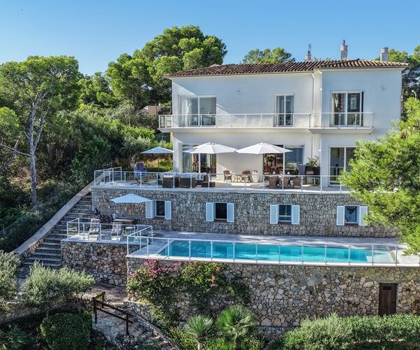 A timeless five-bedroom villa in Port d’Andratx, with expansive sea and mountain views, pool, and elegant indoor-outdoor living.