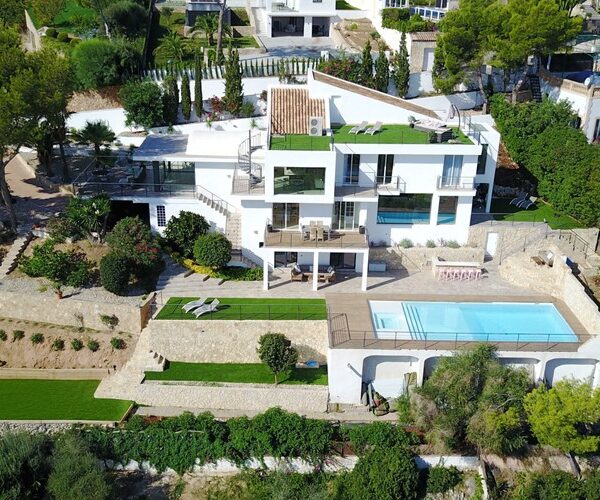 Moderne Villa in Nova Santa Ponsa, Calvià, mit vier Schlafzimmern plus Gästesuite, Fußbodenheizung, Aufzug, privatem Pool und Lage in unmittelbarer Nähe zu Port Adriano.
