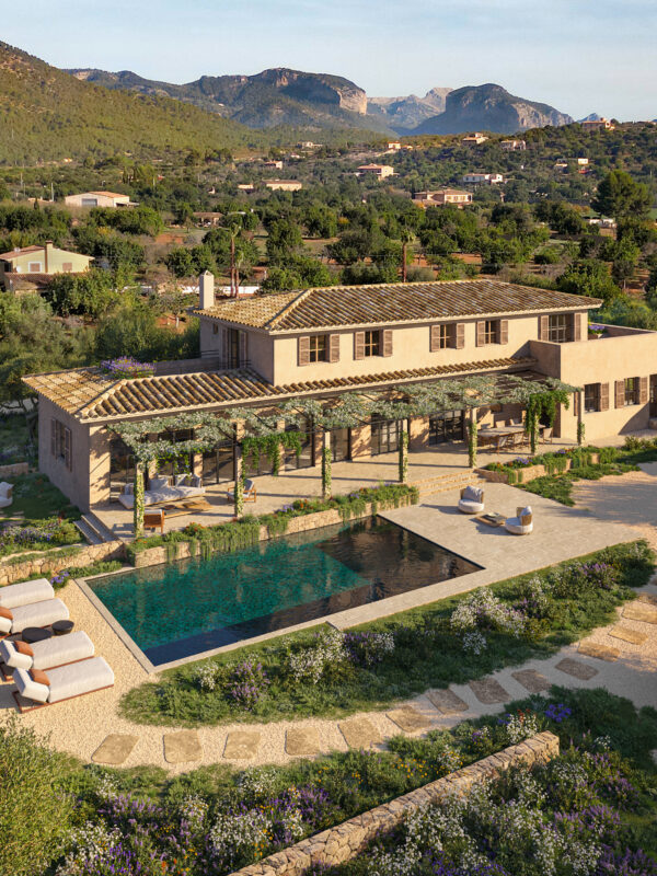 Neu gebaute Landvilla in Sencelles mit sechs Schlafzimmern en suite, Gästehaus, Pool und Bergblick – ein friedlicher Rückzugsort, der modernes Design mit mallorquinischem Charme verbindet.