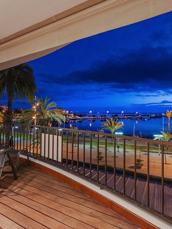 Diese zum Verkauf stehende 3-Zimmer-Wohnung in Port de Alcudia bietet einen herrlichen Blick auf das Meer und den Hafen.