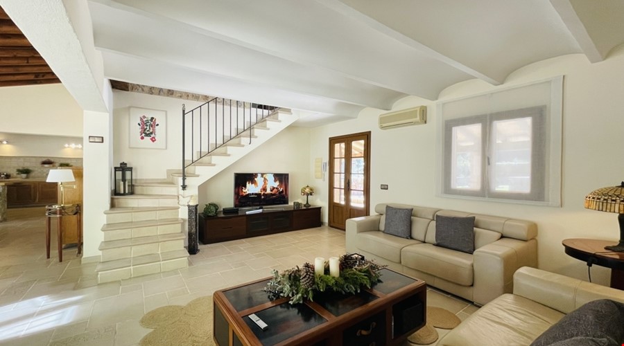 Die Finca erstreckt sich über zwei Etagen mit einer Wohnfläche von rund 326 m² und wurde mit viel Sorgfalt gestaltet, um rustikale Authentizität mit schlichter Eleganz zu vereinen. Der offene Wohnbereich verbindet Wohnzimmer, Esszimmer und Küche zu einem harmonischen Ganzen. Natursteinböden und große Fenster schaffen eine warme, lichtdurchflutete Atmosphäre.