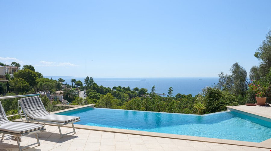 Auf einem 1.000 m² großen Grundstück bietet die Villa großzügige Außenbereiche, die Privatsphäre und Entspannung in den Mittelpunkt stellen. Der private Swimmingpool liegt eingebettet in einen reifen mediterranen Garten, umgeben von sonnigen Terrassen. Vom Pool oder dem oberen Balkon aus eröffnet sich ein weiter Blick über das Meer – ein stiller Begleiter des täglichen Lebens. Die Architektur im Außenbereich zeichnet sich durch schlichte Linien und ruhige Ästhetik aus – ein Ort, der Gelassenheit atmet.