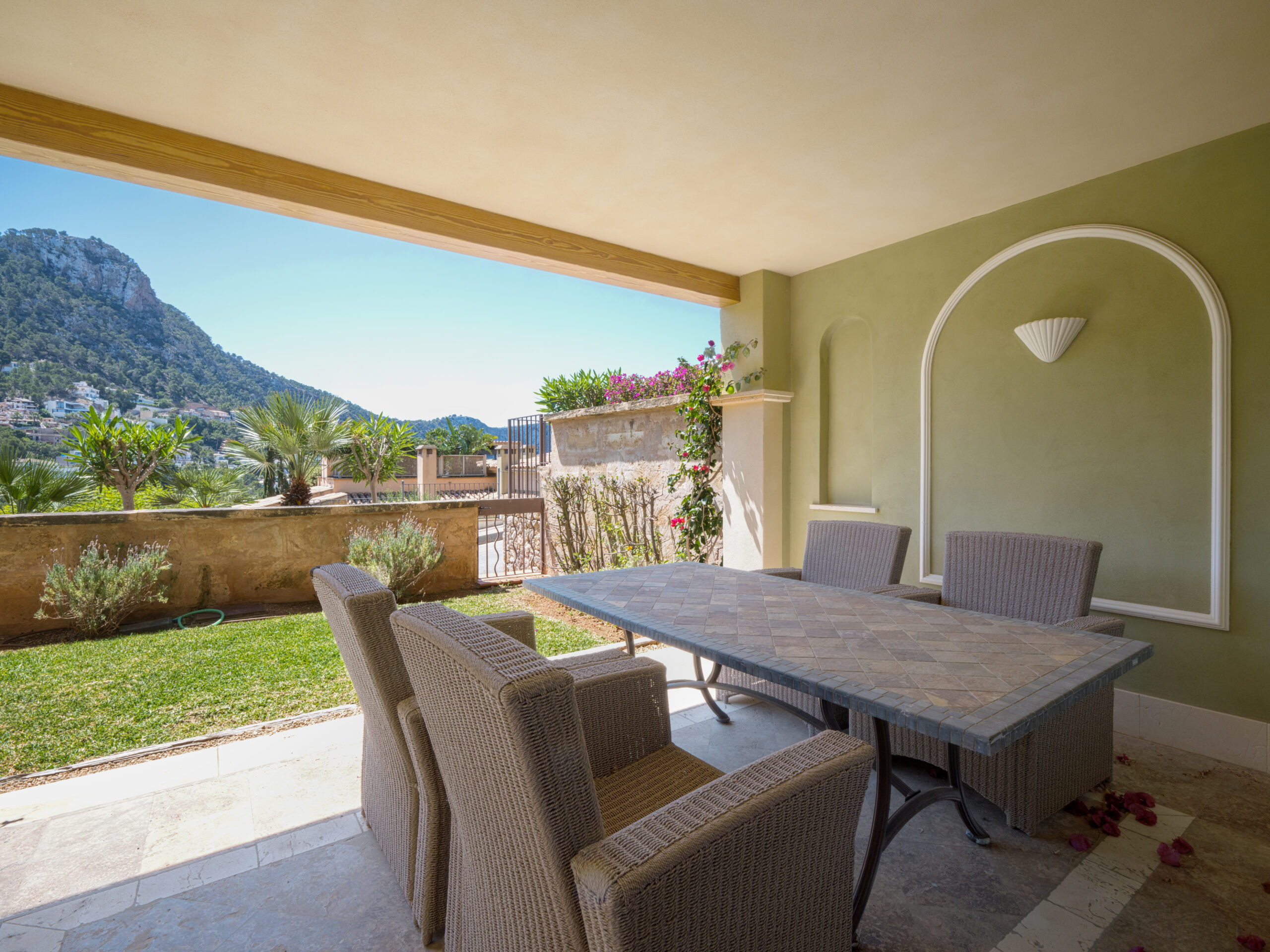Etwa 35 Autominuten von Palma entfernt, liegt dieses Haus in unmittelbarer Nähe der pulsierenden Hauptstadt Mallorcas, aber dennoch abgeschieden zwischen hochwertigen Villen mit Blick auf das Meer.
